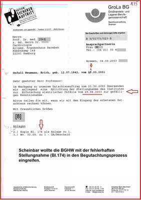 Es war also von Anfang an ein Fehler, dass das Gericht und die Beklagte die Amtshilfe nicht zugelassen haben. Und die BGHW hat auch die Amtshilfe von dem BG Unfallarzt Dr. med. [11-2] in der Verkehrsunfallsache verhindert.