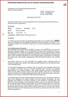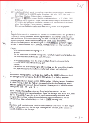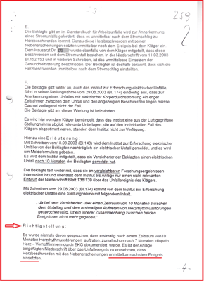 Dem konnte ich nicht folgen, denn die Aktenlage ist anfechtbar, nicht eindeutig. Und zu einer medizinischen Amtshilfe - wie vom Institut zur Erforschung elektrischer Unfälle angeboten - hat es die Beklagte und das SG Bremen nicht kommen lassen, siehe mein Schreiben vom 19.06.2007.