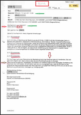 Die BG-Unfallstation Bremen hat mit der Überweisung für den Termin am 30.06.2025 bei der Zweigstelle für Sportmedizin am Weser-Stadion gesorgt. Hier ist meine Webseite bekannt und sie wollten erfahren, wie ich an die Unterlagen gekommen bin. Dazu ist zu sagen: Die BGHW will sich nicht in der Presse und Fernsehen rechtfertigen und hat jeden Kontakt mit mir eingestellt. Siehe E-Mail vom 17.11.2009 und 28.11.2009. Dazu wurden mir seit 18.01.2010 ungerechtfertigte Hausverbote erteilt und die Mitarbeiter haben "Redeverbot" erhalten. Damit war mein Recht auf Akteneinsicht in der Behörde versperrt und die BGHW musste mir die Akten in Kopie und kostenlos überlassen. So hat es die BGHW selbst u.a. im Aktenvermerk vom 09.06.2009 (11)* nachvollziehbar dokumentiert. Mein Fall ist kein Einzelfall, so hat es die BGHW selbst am 13.04.2011 erkannt und dokumentiert.
