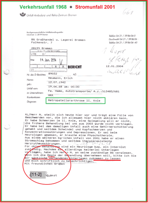 Als gelernter Tischler und Parkettleger habe ich die Zeit ohne Aufträge als Fernfahrer bei der Unfallfirma E. H, Harms überbrückt. Die Unfallfolgen haben sich verschlimmert. Zur Bearbeitung meiner Arbeitsunfälle ist meine Behördenakte im Jahre 2001 geöffnet worden. Meine Akteneinsicht hat Pflichtverletzungen aufgedeckt, die im Sinne der BGHW meine berechtigten Ansprüche verhindern. Wie die Teilerfolge bestätigt haben.