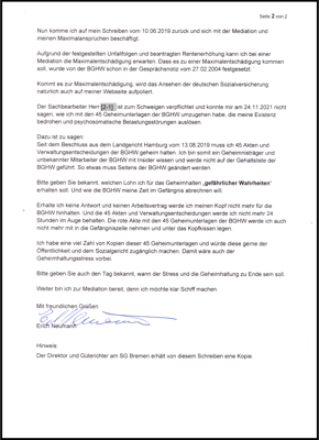 Dieses Schreiben hat die BGHW am 13.08.2019 zur Geheimhaltung unter Nr.: 2 festgesetzt. Und ist der Ansatzpunkt, die Gesetzmäßigkeit soll vertuscht werden.
