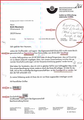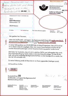 So hat ein Mitarbeiter der BG ETEM für die BGHW (vormals GroLa BG) Irrtum erregende Beweismittel angefertigt für den damals laufenden Gerichtsprozess (Az.: S 18 U 94/04).