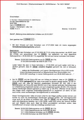 Dieses drei Seiten Schreiben vom 05.10.2009 wird von der BGHW in der Liste vom 13.08.2019 geheim gehalten.