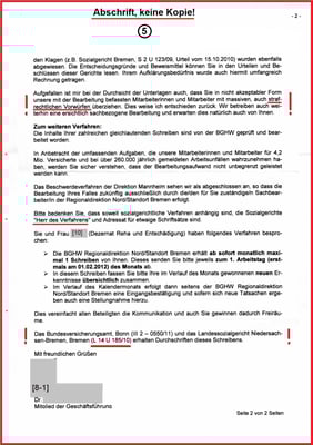 Mit Aktenvermerk vom 21.07.2009 hat der Geschäftsführer der BGHW -Bremen in der Handakte dokumentiert, dass die weitere Bearbeitung meiner Fälle nicht mehr von dem Bearbeiter [18] durchgeführt werden.