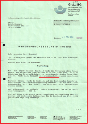 Diesen Fehler hat die BGHW auch nicht in ihrem folgenden Widerspruchbescheid vom 26.05.2004 beseitigt. Auch das LSG Bremen hat diesen Fehler nicht in dem Urteil vom 18.12.2008 beseitigt.