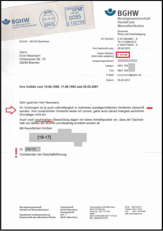 Mein Schreiben an den Vorstand der BGHW Mannheim
