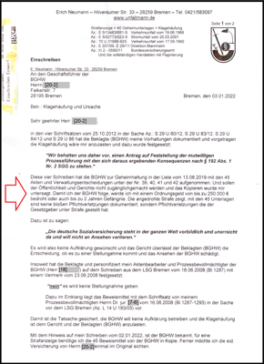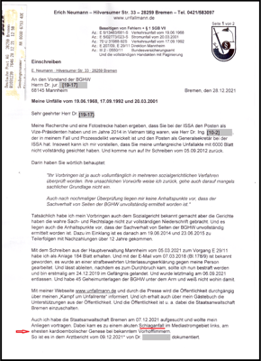 Der Geschäftsführer der BGHW wurde über meinen Schlaganfall informiert und über das merkwürdige Verwaltungshandeln der BGHW.