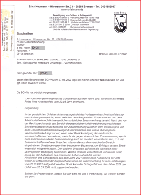 Widerspruchsbescheid Schlaganfall