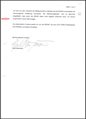 Es muss auch eine "gefährliche Wahrheit" in der Akte geben und ist das Motiv, warum eine detaillierte Stellungnahme verweigert wird. Dazu im Einklang hat die BGHW mit dem Schreiben vom 05.10.2009 (drei Seiten) wörtlich dokumentiert: