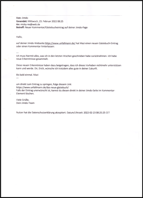 Es gab damals keiner Rufmord und es gibt auch jetzt keinen Rufmord auf meiner Webseite, weil ich so etwas auf keinem Fall dulde.