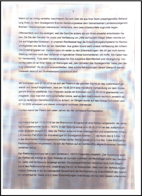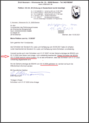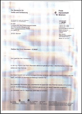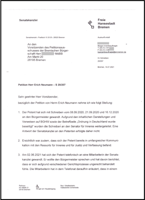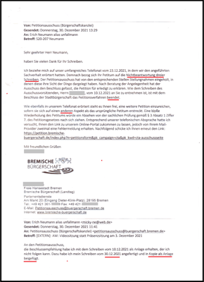 Petitionsausschuss Bremen haben am 07.06.2022 in dieser Sache meine folgendes Schreiben erhalten.