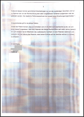 Auf diese Antwort warte ich bis dato. Dazu im Einklang folgt mein Schreiben vom 14.09.2021 an den Petitionsausschuss.