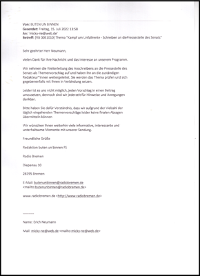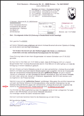Bürgermeister Bremen hat am 07.06.2022 in dieser Sache mein folgendes Schreiben erhalten.