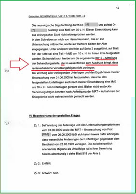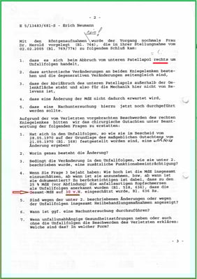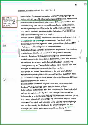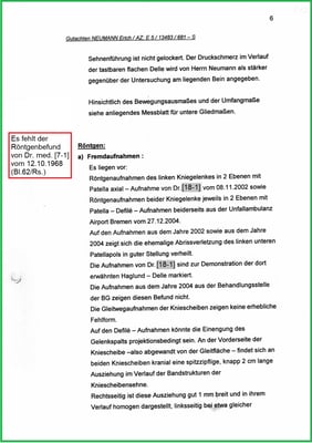Der Gutachter hat nicht einmal erkannt, dass es zu einer Fraktur an der Unterseite meiner li. Kniescheibe gekommen ist.