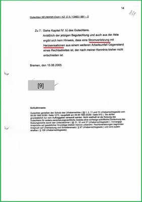 So wird auch nachvollziehbar, warum der Gutachter auf der Seite 11 (Bl.828) wörtlich dokumentiert: