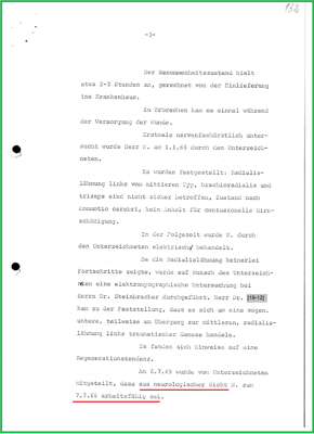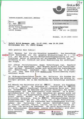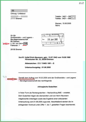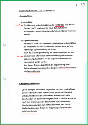 mit einem Ausrufungszeichen wurde der Gutachter darauf hingewiesen, dass ich über die medizinischen Unterlagen der