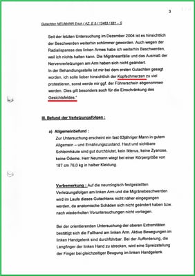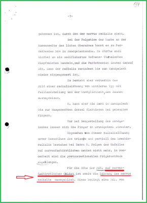 Und ist unrichtig davon ausgegangen der Neurologe hätte die Muskelminderung des linken Armes infolge der Diagnose: Lähmung des Radialisnerven mit erfasst. Tatsächlich hat der Neurologe aber die Muskelminderung bei seiner Wertung (MdE 25%) ausgeklammert.