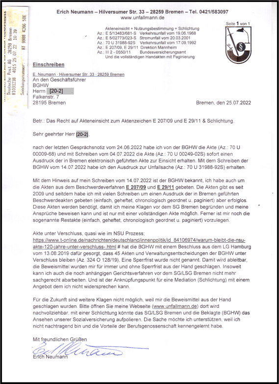 25.07.2022 Mein Schreiben an den Vorstand der BGHW Mannheim