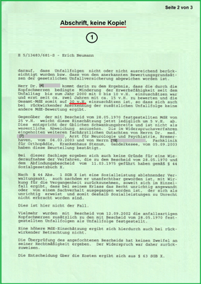 In der Stromunfallsache liegt dazu der Notarztbericht vom 06.02.2001 und das Schreiben aus dem SG Bremen vom 01.09.2009 vor. Und in der Verkehrsunfallsache vom 19.06.1968 liegt der Chefarztbericht vom 13.02.2011 vor. Gewollt oder ungewollt die Beklagte (BGHW) und Gerichte haben unrichtige Entscheidungen getroffen. Dazu haben sie unrichtige Beweismittel anfertigen lassen, womit sich die Beklagte von Anfang an finanzielle Vorteile verschaffen konnte. Nennt es wie ihr wollt für mich ist es Betrug.