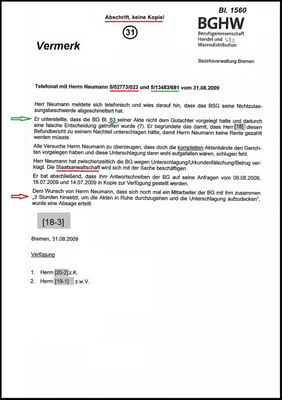 Und dieser Beschluss ist wahrhaftig auch für die Beklagte und das SG/LSG Bremen sehr bedauerlich. Denn nun wurde die Akte von mir intensiv studiert und Prozessdelikt wurde aufgedeckt.