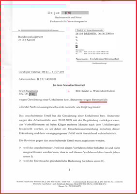 Beschluss aus dem BSG zum Stromunfall