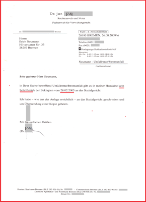 Schreiben von meinem Anwalt Dr. jur. mit dem Hinweis: