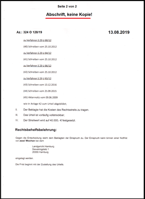 Abschrift Nr. 39, 40, 41 und 42, alles Schriftsätze vom 25.10.2012