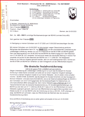 Das BVA ist nun zum Bundesamt für Soziale Sicherung geworden. Dem Bundesamt habe ich am 01.07.2020 die Geheimakte vom 05.10.2009 (drei Seiten) anvertraut. Und habe um weitere Aufklärung gebeten.