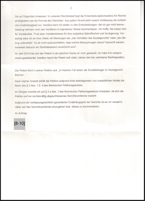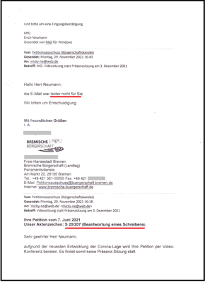 Aus der Senatskanzlei (Bürgermeister) kommt eine Antwort an den Petitionsausschuss Bremen.