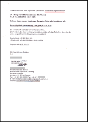 An den Petitionsschuss der Bremischen Bürgerschaft: