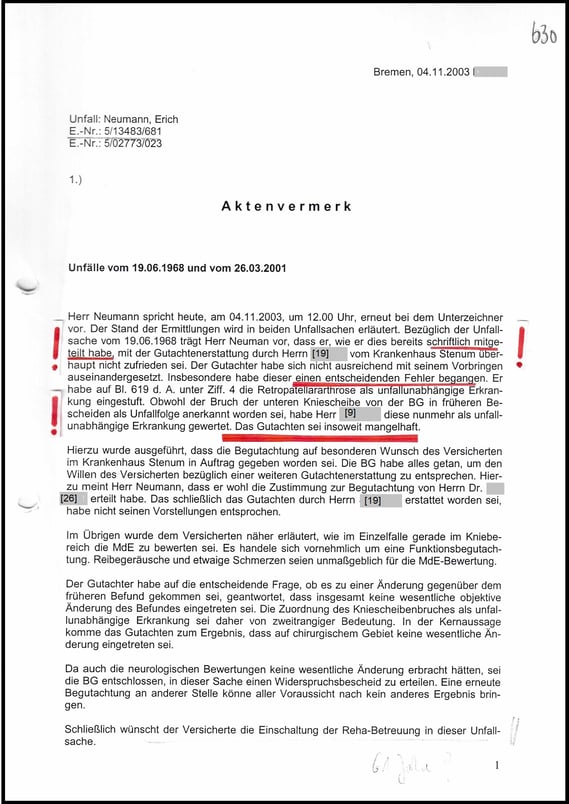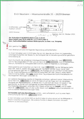 Es folgt mein Schreiben an den Rentengutachter Herrn Dr. med. [26] und wurde für die BGHW mit der Blattnummer 627/9 sogleich aktenkundig.