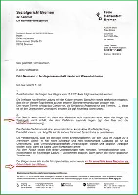 Mit dem Schreiben aus dem LSG Bremen wurde u. a. nachvollziehbar: