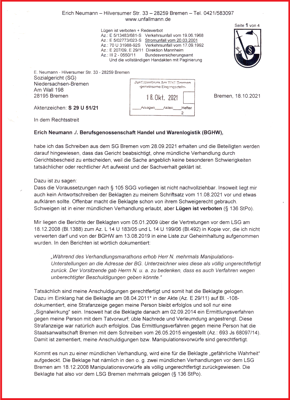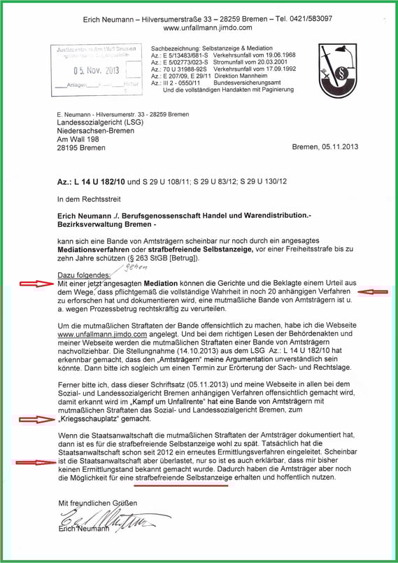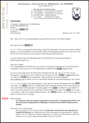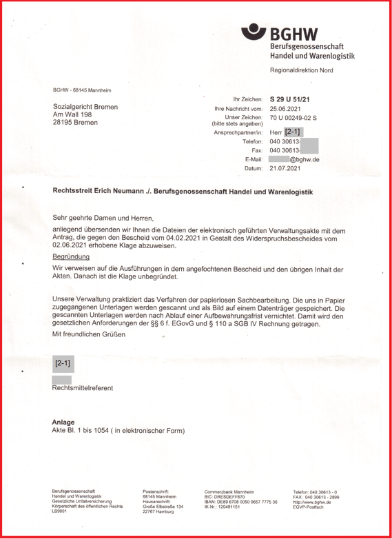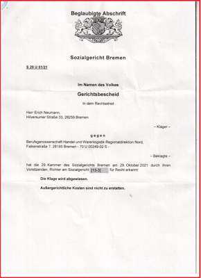 Es ist noch ein weiteres Verfahren am laufen. Insoweit habe ich das letzte Schreiben aus dem LSG Bremen vom 24.02.2022 auf der Unterseite vom 24.02.2022 für die Öffentlichkeit zugänglich gemacht (L 14 U 131/21).