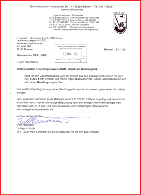 Es folgt meine Berufung am LSG Bremen.