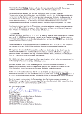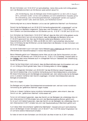 es wäre nicht erkennbar wie es vor Gericht weitergeht. Und habe auf dieser Unterseite das letzte Schreiben aus dem LSG Bremen vom 16.02.2022 wie folgt für die Öffentlichkeit zugänglich gemacht (L 14 U 171/21).