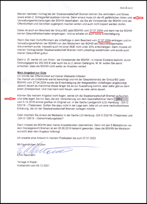 Mit dem folgenden Schreiben vom 18.12.2020 wurde darauf hingewiesen, dass mir entsprechend dem Urteil aus dem Landgericht Hamburg vom 13.08.2019 untersagt wurde, die betreffenden 45 Schreiben und auch das Schreiben an die HKK vom 27.04.2004 zu veröffentlichen und zu kopieren.