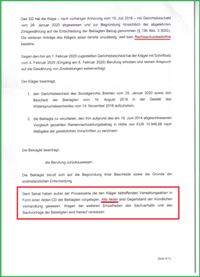 Wird das SG Bremen nicht die vollständige Akte von der Beklagten anfordern, wäre Strafvereitlung im Amt ableitbar.