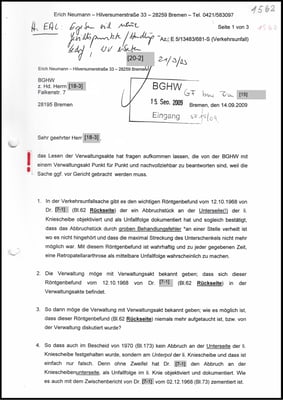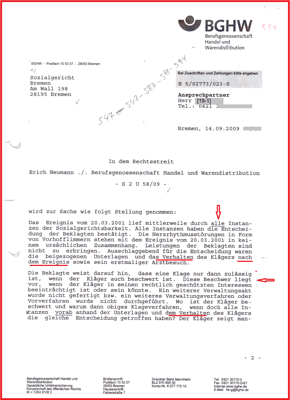 Mit dem Schriftsatz vom 14.09.2009 ist gesichert, die Beklagte (BGHW) will meine Aufklärung mit sogenannten Mutwillenskosten zurückdrängen. Dazu ist das SG Bremen aber noch nicht bereit.