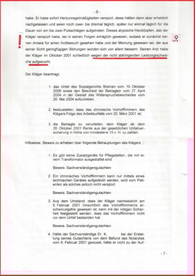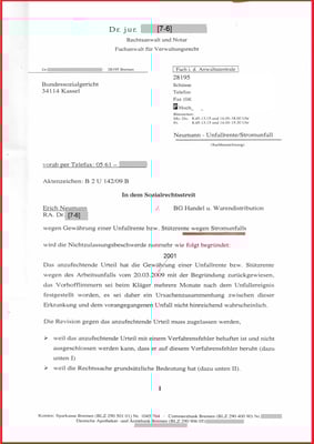Es folgt der Schriftsatz an das BSG Kassel, wegen Gewährung einer Unfallrente bzw. Stützrente wegen Stromunfalls wird die Nichtzulassungsbeschwerde wie folg begründet:
