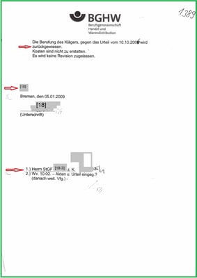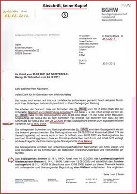 Es wurde selbst von der BGHW dokumentiert, dass die Akte unvollständig ist. So fehlte auch die ausschlaggebende Akte mit Bl. 241-531.