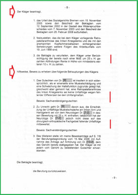 Es folgt der Schriftsatz an das BSG Kassel, wegen Unfallrentenerhöhung betr. Verkehrsunfall vom 19.06.1968.