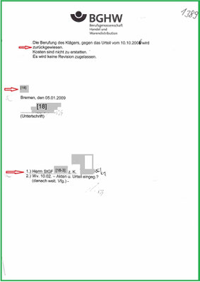 Es muss auch eine "gefährliche Wahrheit" in der Akte geben und ist das Motiv, warum eine detaillierte Stellungnahme verweigert wird. Dazu im Einklang hat die BGHW mit dem Schreiben vom 05.10.2009 (drei Seiten) wörtlich dokumentiert: