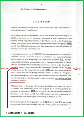 bricht in der Verkehrsunfallsache vom 19.06.1968 mit dem vorliegenden Chefarztbericht vom 13.02.2011 zusammen. Denn mit dem Chefarztbericht ist die Manipulation und Prozesslüge dokumentiert.