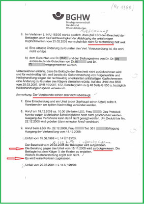 Mein "anfallsartigen Kopfschmerzen" sind und bleiben Unfallfolge und die BGHW musste den Bescheid vom 25.02.2008 aufheben.