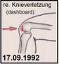 Am 17.09.1992 kam es im Med. Techn. Notdienst zu meinem Verkehrsunfall mit rechtem Knieaufprall. Dazu im Einklang liegen die Arztberichte seit dem 17.09.1992 aus der BG-Unfallstation vor. Und diagnostizieren einen Gesundheitsschaden im re. Knie.