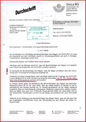 Schriftsatz der Beklagten dokumentiert: