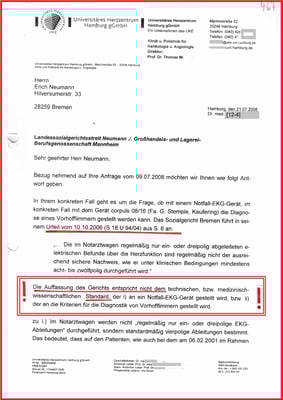 Und nur weil ich in der Medizintechnik mit der Reparatur von EKG-Geräten zu tun hatte, ist mir die merkwürdige Auffassung des Gerichts aufgefallen. Und habe dazu im Einklang, erfolgreich die Sachverständigen eingeschaltet.