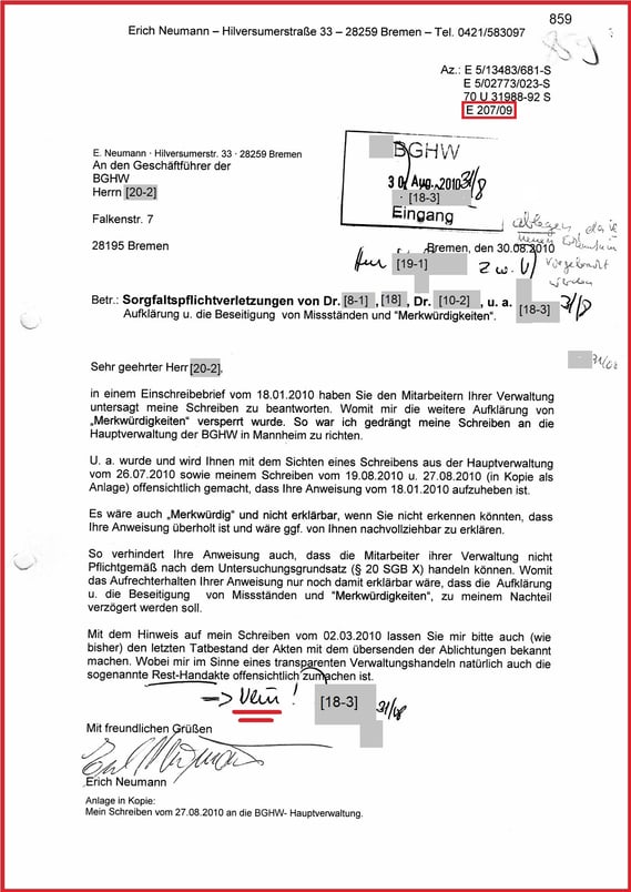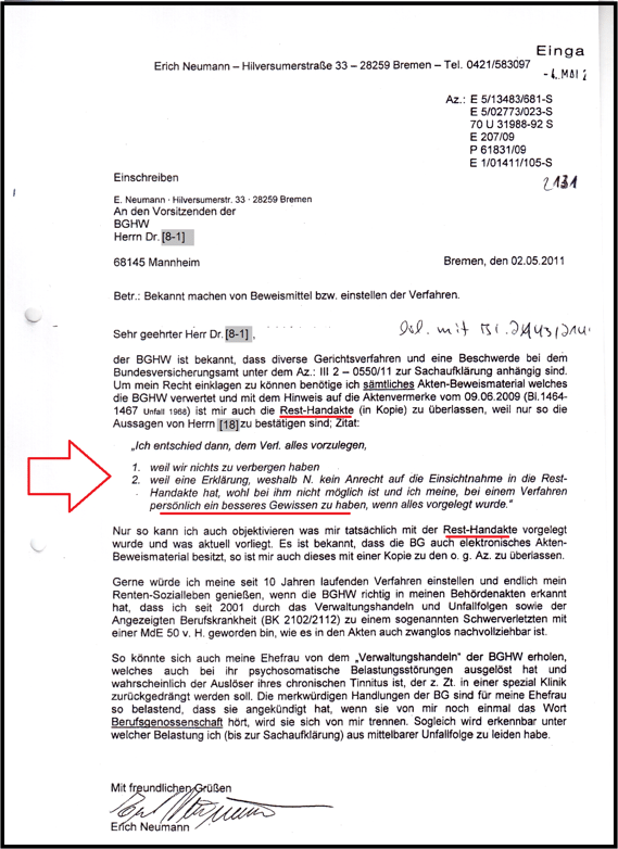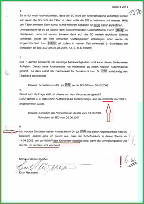 war von der Beklagten nicht vorgesehen. Auch das SG Bremen wünschte keine Antwort. Es zementiert, hier ist eine "kriminelle Vereinigung" am Wirken und zu einem riesigen Aktenmaterial führt. Weil sich die Bande nicht rechtfertigen kann/will und ist mit der E-Mail vom 17.11.2009 u. 28.11.2009 nachvollziehbar dokumentiert. Dem nicht genug gibt es noch das interne Schreiben der BGHW Bremen vom 05.10.2009 (drei Seiten)