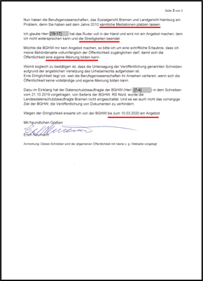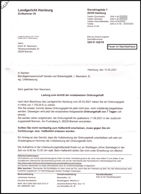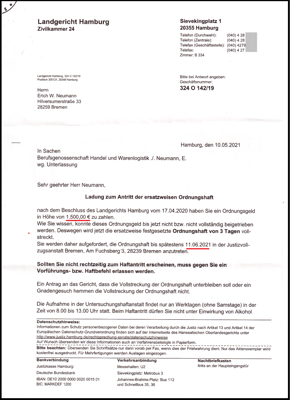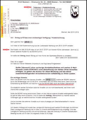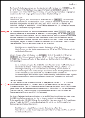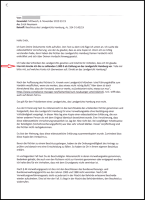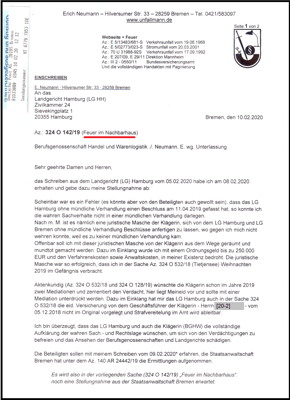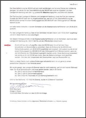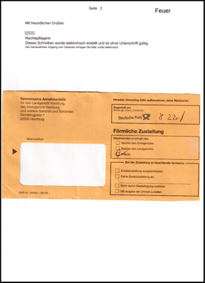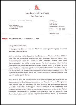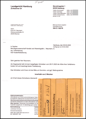 Antwortschreiben aus dem LG Hamburg.