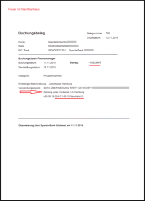 12.11.2019 und dem Buchungsbeleg vom